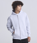 70% ringspun cotton/20% polyester/10% recycled polyester.* Cotton faced fabric.Brushed back fleece.Drop shoulder style.Oversized fit.Three panel double fabric hood.Full length two way zip.Front pouch pockets.Ribbed cuffs and hem.Twin needle stitching.Tear out label.