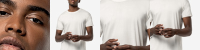 100% organic combed cotton.* Organic or in-conversion to organic cotton.Ribbed collar with elastane.Taped neck.Tubular body.Twin needle cuffs and hem.Unbranded size label at neckline.