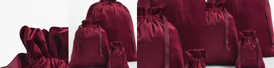100% recycled polyester velvet. Self colour grosgrain ribbon drawstring closure. Multi-purpose use. Tear out label.