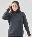 72% recycled polyester/28% polyester. Sweater knit fleece with brushed inner. Brushed tricot lined collar. Low profile zip neck. Raglan sleeves. Articulated shoulders. Elasticated bound cuffs and hem. Flatlock stitched seams.