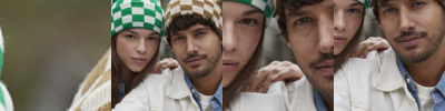 65% recycled polyester/31% acrylic/3% nylon/1% elastane. Fine ribbed knit. Double layer knit. Checkerboard print design. Wide cuffed design. Darted crown. Tear out label.