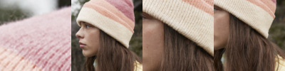 50% viscose/30% polyester/20% nylon. Single layer knit. Ombré coloured design. Cuffed design. Engineered crown. Tear out label.