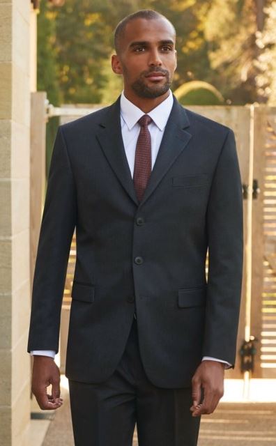 64% Polyester, 34% Viscose, 2% Lycra. Notch lapel, centre vent, 2 straight jett pockets, mock jett pocket