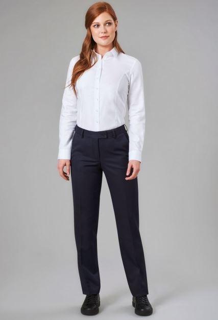 Flat front, 2 side pockets, 1 rear pocket, plain front trouser, half lined, belt loops, comfort waistband, clasp fastening and french bearer, tailored fit Half hem width at waist size 34" = 21cm