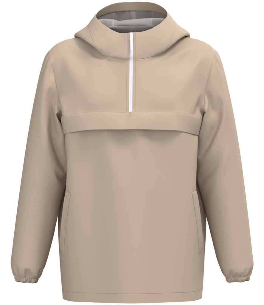 Recycled polyester outer. Two layer bonded fabric with inner membrane. Waterproof 4000mm with heat sealed seams. Breathable 3000g. Straight fit. Three panel hood with drawcord and recycled inner stoppers. Zip neck with recycled waterproof zip. Front pocket with flap. Two ventilation eyelets under the front pocket flap. Two front piped pockets with reverse zip. Elasticated cuffs. Drawcord hem on left side with recycled stoppers. Tag free. Recycled polyester is made from post-consumer waste.