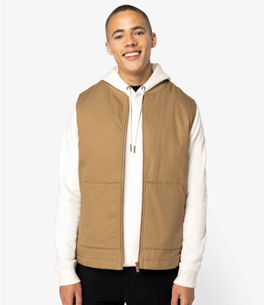 Two layer soft shell. 55% recycled polyester/45% polyester taffeta outer layer bonded with recycled polyester fleece. Four-way stretch fabric. 55% recycled polyester/45% polyester lining. Thermolex™ high loft synthetic down insulation. Four-way stretch. Lighweight. PFC-free DWR showerproof finish. High performance windproof outer shell. Full length zip with chin guard and brushed tricot inner zip guard. Elasticated armhole trim. Contoured seams. Adjustable drawcord hem. Branded. Access for decoration.