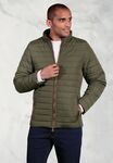 Water resistant finish, recycled outer fabric, faux suede binding, 100g recycled wadding, 2 outer side pockets, 1 inside zip pocket, 2 drawstring toggles at side seams.