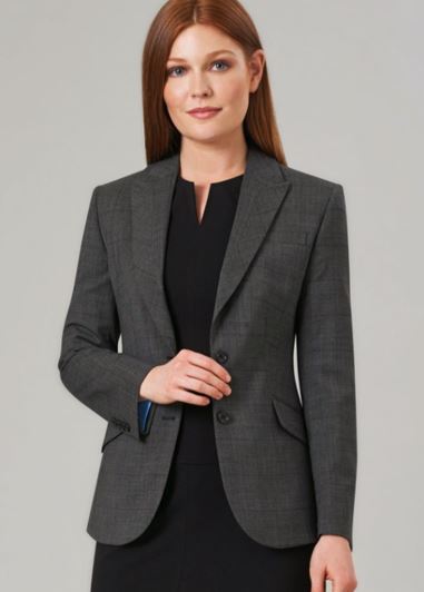 54% Polyester, 44% Wool, 2% LYCRA® Elastane. 2 button classic fit jacket, 2 slanted flap pockets, centre vent, 1 inside pocket. Centre back length at size 12R = 65.5cm