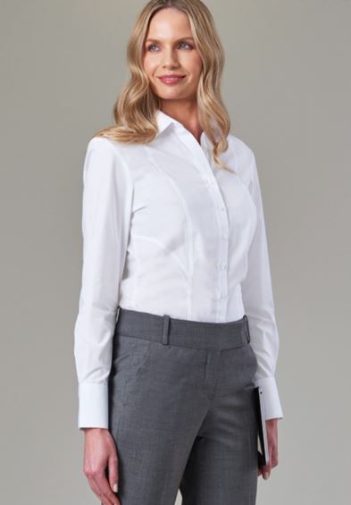 60% Cotton, 40% Polyester. Cotton-rich business blouse, matches Pescara blouse and Rufina & Roccella shirts. Easycare and easy iron practicality.