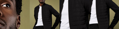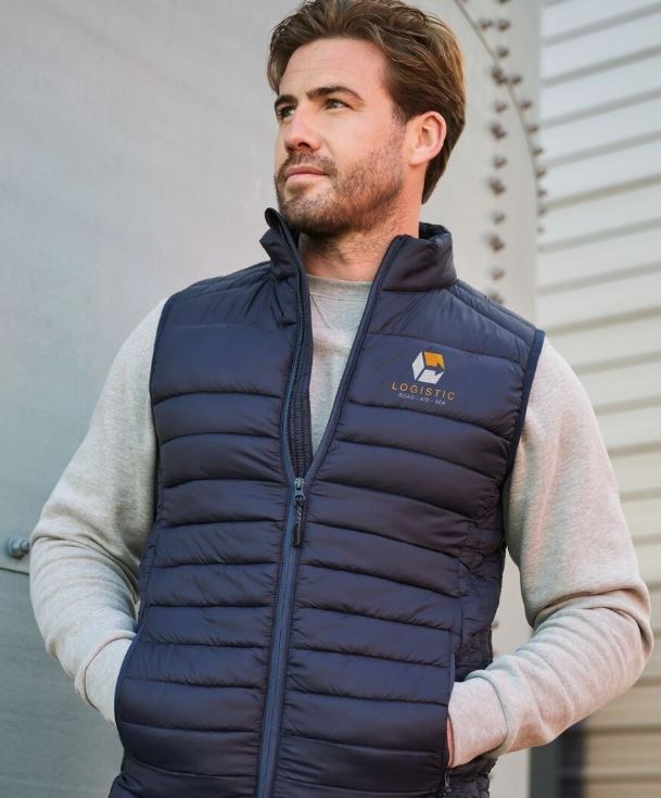 Polyester quilted front body.Polyester padding.Cotton faced brushed back jersey.Regular fit.Cadet collar.Taped neck and shoulders.Full length YKK metal zip.Two front pockets.Ribbed cuffs and hem.Tear out label.