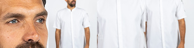 Semi-fitted, short sleeve, single cuff, classic collar, epaulettes, 2 chest pockets with pointed flaps, 1 with pen holder.
