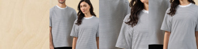 Jersey fabric.Shoulder to shoulder taping.Side seams.Twin needle sleeves and hem.Unbranded size label.