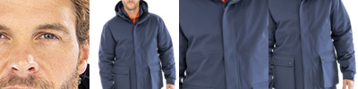 Recycled polyester oxford PVC coated panels.Breathable and windproof.Unisex style.Stand up collar.Full length zip. Contrast tough shoulder and articulated elbow panels.Inner pockets.Hang loop.Two front zip pockets.Black bound cuffs and pocket welt.Tag free.