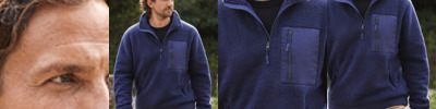 Borg high pile fleece.Polar fleece backing.Funnel neck.Full length YKK zip with inner zip guard.Hanging loop.Locker patch.Matt finish left chest pocket with zip to allow for decoration.Two front zip pockets.Plain recycled swing tag.
