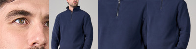 Borg high pile fleece.Polar fleece backing.Funnel neck.1/4 YKK zip with inner zip guard.Hanging loop.Locker patch.Matt finish left chest pocket with zip to allow for decoration.Two front zip pockets.Elasticated cuffs and hem.Plain recycled swing tag.