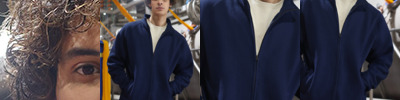 Unlined.Standard unisex fit.Full length zip.Side panel inserts for shape and fit.Bound cuffs and hem.Twin needle stitching.Unbranded size label.