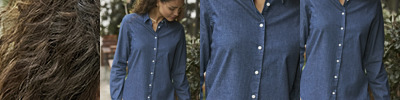 Enzyme washed.Double pre-shrunk.Tailored style.Self fabric collar.Reinforced shoulders.Three button placket.Reinforced shoulders.Twin needle sleeves and hem.