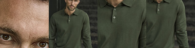 Fully fashioned knit.Tailored fit.Three self colour button placket.Knitted ribbed cuffs and hem.