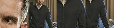 Fully fashioned knit.Tailored fit.Full length SBS zip.Knitted ribbed collar, cuffs and hem.