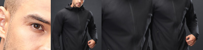 Four-way stretch microfibre fabric.Raglan sleeves.Three panel unlined hood.Funnel neck with sports toggles.Full length reverse zip with snap down pull.Two front zip pockets.Self fabric pocket bags.Drop hem.Twin needle hem.Tear out label.