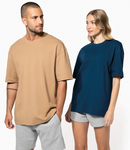 Carded cotton.Jersey fabric.Oversized fit with dropped shoulders.1x1 ribbed knit.Taped neck.Silicone shoulder reinforcement.Side seams.Topstitching.Tag free.