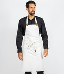 Heavy canvas.Faux leather trim detail.Large durable studs.Adjustable neckband.Detachable neckband and tie tapes.Left front pocket.Self fabric cloth holder.Width 71cm.Length 91cm.Domestic wash at 40°C.