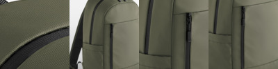 Matte-look PU coating.Padded grab handles.Padded adjustable air mesh shoulder straps.Adjustable chest strap.Padded back panel.Luggage strap.Top zip pocket.Front zip pocket.Elasticated side pockets.Internal organiser section.Internal key clip.Rear padded laptop compartment, compatible up to 16".Tear out label Capacity 28 litres.