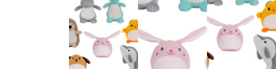 Soft plush character key rings - grey dolphin, grey hippo, light brown dog, light brown hedgehog, pink bunny, turquoise dinosaur and yellow chick.Clip on attachment.White colour panel on tummy.Height ranges from 9cm up to 13cm.Suitable for DFT, vinyl print and sublimation.