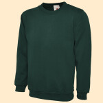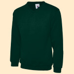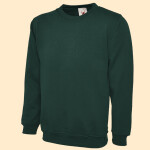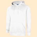 Soft cotton faced fabric. Brushed back fleece. Drop shoulder style. Double fabric hood. No drawcords to comply with EU regulations. Front pouch pocket.