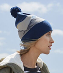 50% recycled polyester/50% acrylic. Double layer knit.Cuffed design.Two tone pom pom.Tear out label.