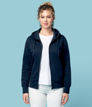 85% organic combed cotton/15% recycled polyester. Enzyme washed.Soft cotton faced fabric.Three yarn low shrinkage fleece.Brushed back fleece.Drop shoulder style.Straight fit.Jersey lined hood with self colour drawcord.Jersey taped neck.Half moon back yoke.Full length zip.Front pouch pockets.1x1 ribbed cuffs and hem.Twin needle stitching.Unbranded size label.