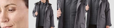 97% polyester/3% spandex outer bonded with polyester fleece. Feather free thermal shell.H2XTREME® waterproof 5000mm and breathable 5000g fabric.Windproof.Brushed tricot lined collar.Detachable adjustable hood.Full length zip with studded storm flap, chin guard and inner zip guard.Right chest zip pocket.Media port.Contrast panels.Two front zip pockets with brushed tricot lining.Tear release adjustable cuffs.Drop hem with adjustable drawcord.Zip out polyester ripstop jacket.Full length zip.Two front zip pockets.Branded.Access for decoration on outer jacket.Special Order items are non-stock Items ordered from the supplier. These items are non-returnable, and lead times may vary.